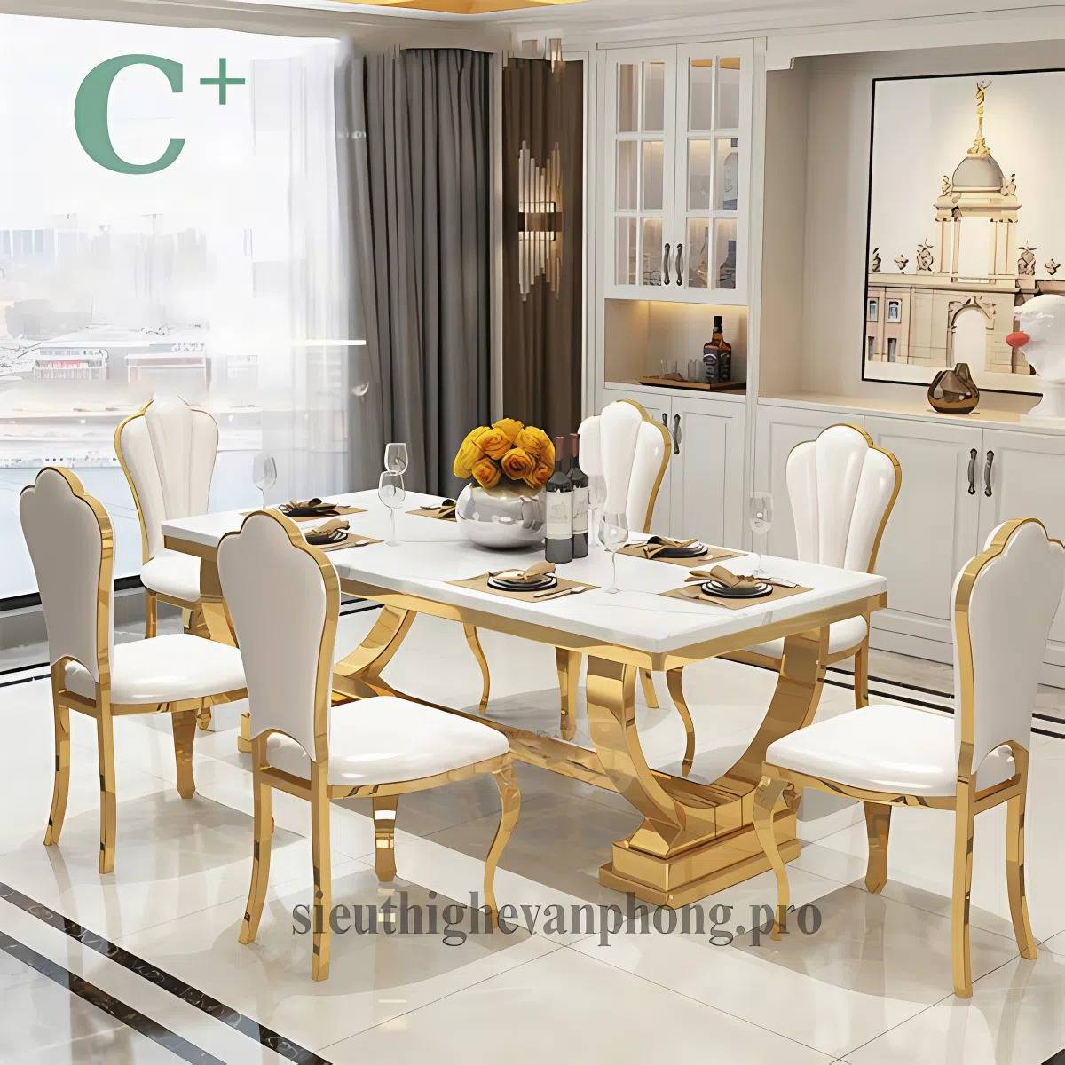 • Khung bàn: Inox 201 mạ vàng – chắc chắn và có độ bền cao, đồng thời mang lại vẻ ngoài lấp lánh và sang trọng.