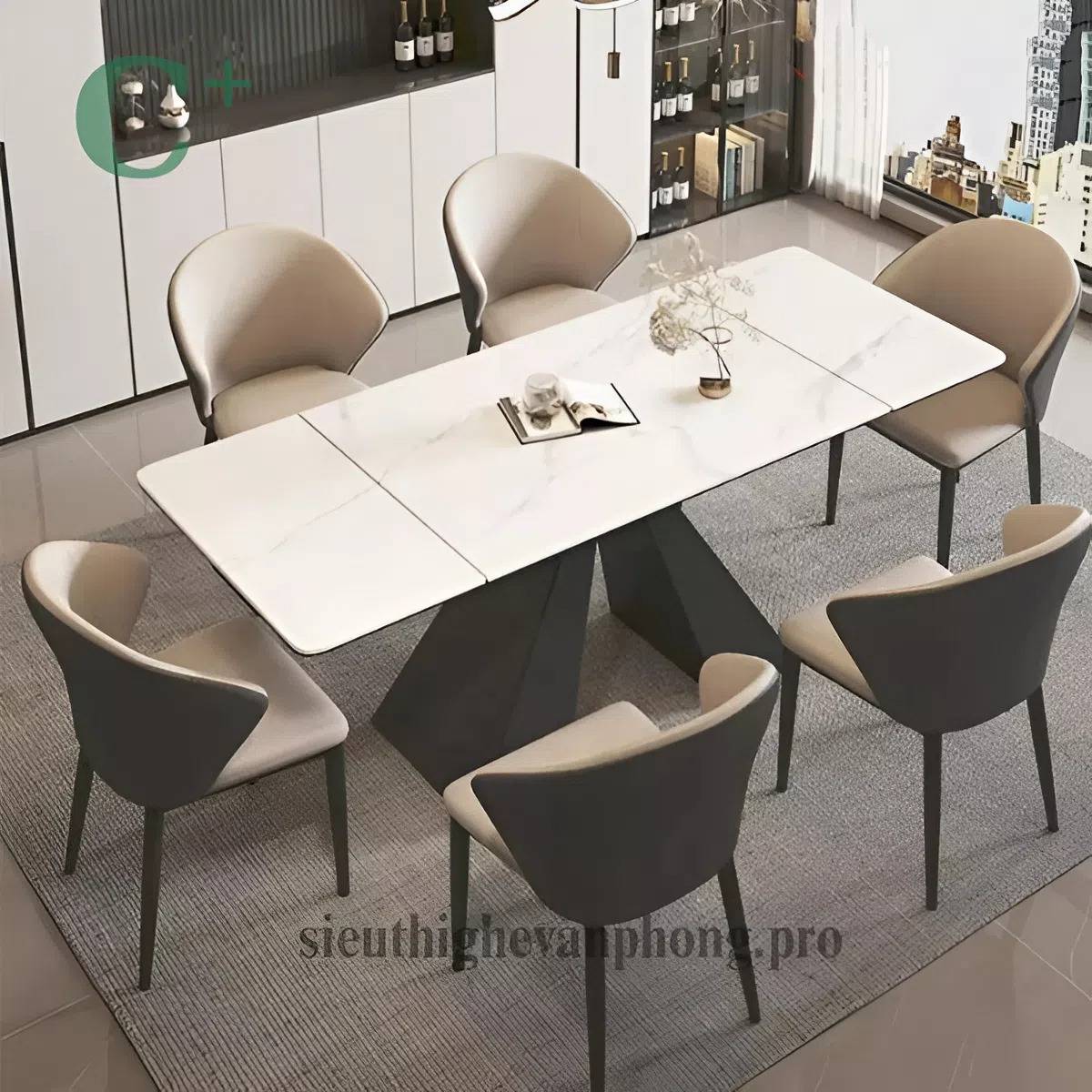 - Chất liệu: mặt đá ceramic, chân sắt sơn tĩnh điện đen nhám